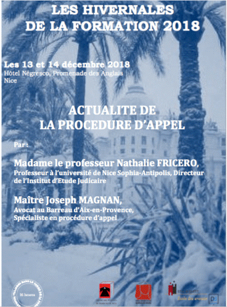Maître Joseph MAGNAN, Avocat spécialisé en procédure d’appel aura l’honneur et le plaisir d’intervenir aux cotés...